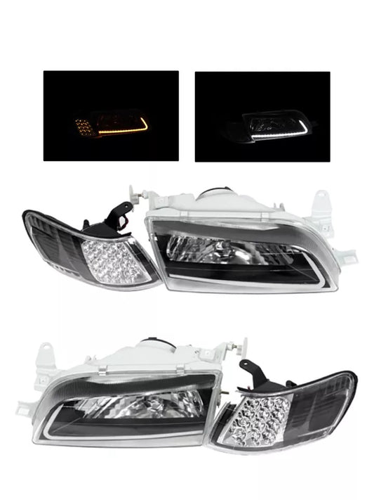 TOYOTA COROLLA 93-97 HEADLIGHTS LED SET BLACK AE100 101 AND CORNER LIGHT LED