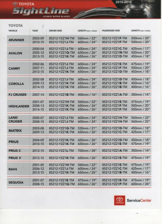 Windshield Sightline Wiper Blades Fit For Toyota Camry